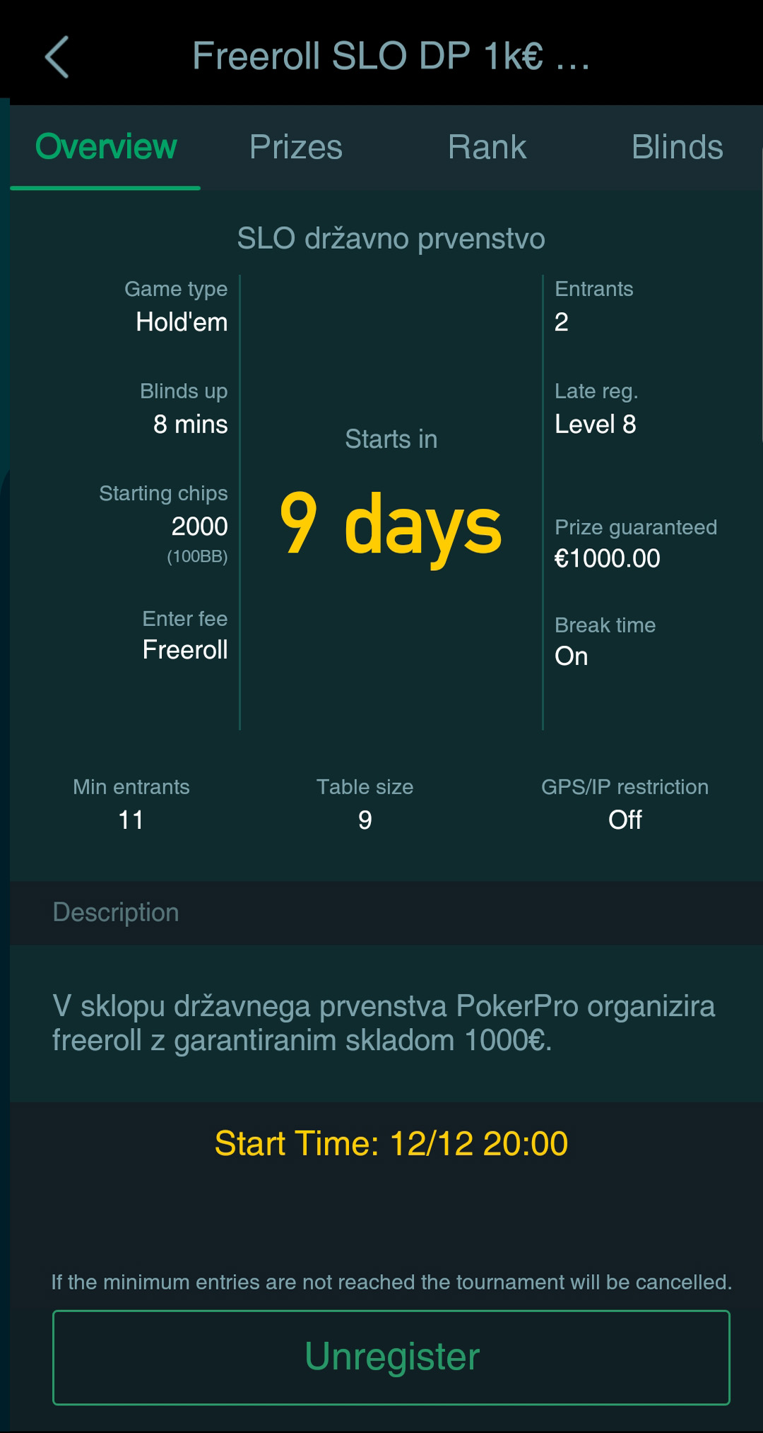 Z registracijo preko PokerProja boste sodelovali v štirih različnih klubih, ki se med seboj povezujejo v unije oz “Circle” in bili tako člani vseh največjih skupin – United Poker Clubs, Irish Poker Community in Mediterranean Circle. Skozi celoten dan potekajo denarne igre in najrazličnejši turnirji. V nedeljo ob 18.30 vas čaka 250€ turnir dobrodošlice.