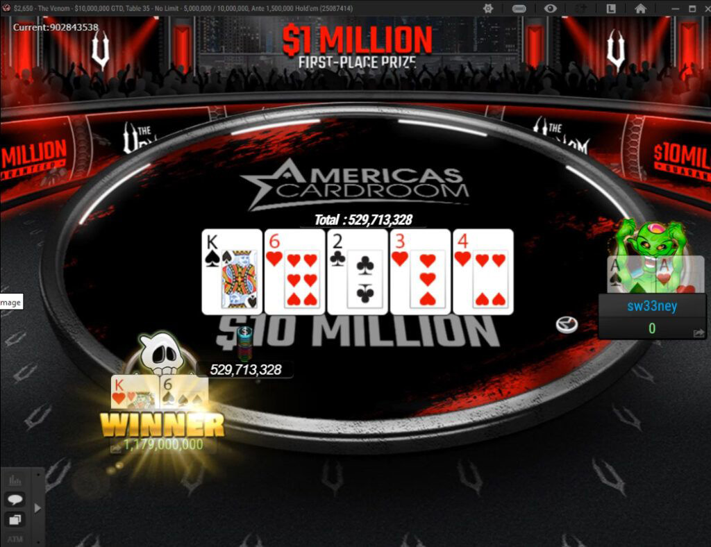 Rekordni $10M GTD The Venom na PokerKing (WPN mreža) se je končal po sedmih vročih dneh igranja. Ta dogodek je bil še posebej opazen, saj sta zmagovalec in podprvak osvojila sedemmestne nagrade in se pridružila ekskluzivnemu “klubu milijonarjev”. Prvič v svoji zgodovini je The Venom imel overlay (175.000 $), zmago pa je slavil ameriški igralec z imenom “BabyBowser” in osvojil 1.514.000 $ denarne nagrade.