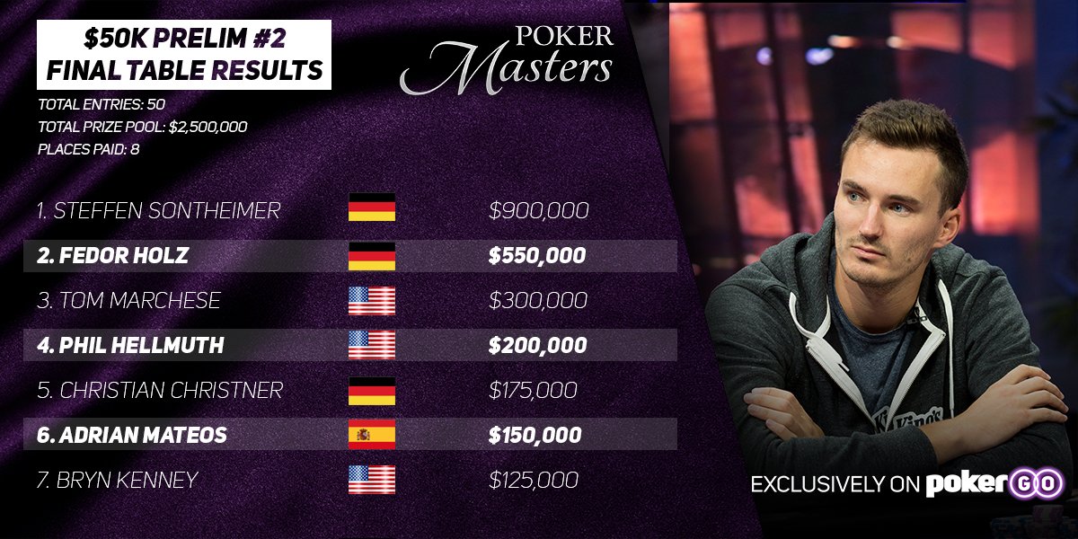 Vse to je izkoristil prej omenjeni Nemec, ki je tudi zmagal drugi začetni turnir. V heads-up borbi je premagal rojaka in dobrega prijatelja Fedorja Holza, ki je zanimivo, na začetku letošnjega leta izpostavil ravno Sontheimerja kot pokeraša, na katerega je potrebno računati.