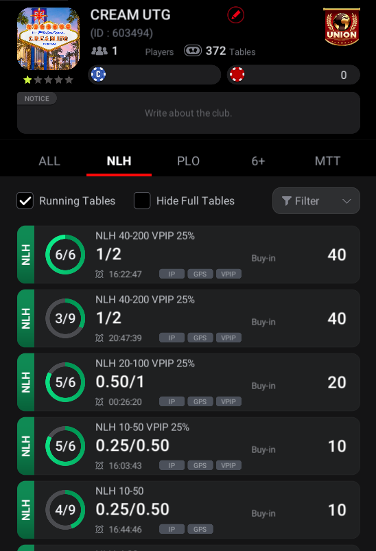 Od zadnje posodobitve smo dodali kar nekaj klubov v našo ponudbo. Največji dodatek so klubi Cream UTG, King Deuce in Royal Gamble, na katerih potekajo NLH in PLO igre skozi celoten dan.