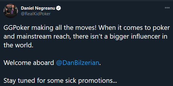 Na drugi strani je Daniel Negreanu poudaril, kako velika zmaga za GGPoker je njegov podpis, saj da nihče v pokru nima tako velikega vpliva kot Dan.