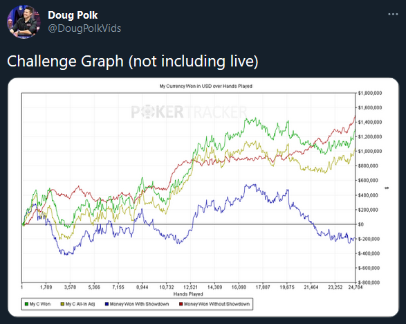 V tej statistiki lahko vidimo, da je Polk pod povprečjem zadevanja hendov skoraj v vsaki statistiki. Svojo twitter objavo je končal z izpostavo, da je presečen, da je Daniel izgubil samo 1,2 milijona.