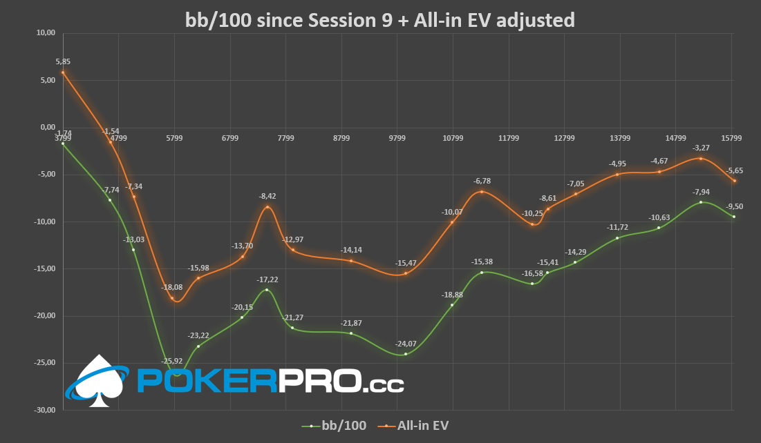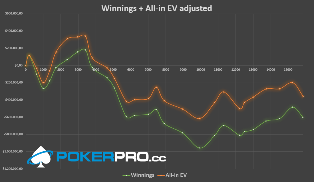 Če pogledamo njegov All-in EV lahko vidimo, da Negreanu izgublja s 5,65 bb/100 v teh 15.850 handih, kar je precej manj, kot se mu je pripisovalo pred začetkom dvoboja. Takrat so se omenjale številke v višini 20 in več, vendar pa je tudi res, da je Kanadčan v tem času naredil velik preskok v svoji HU No Limit igri, kar je priznal tudi Doug sam.