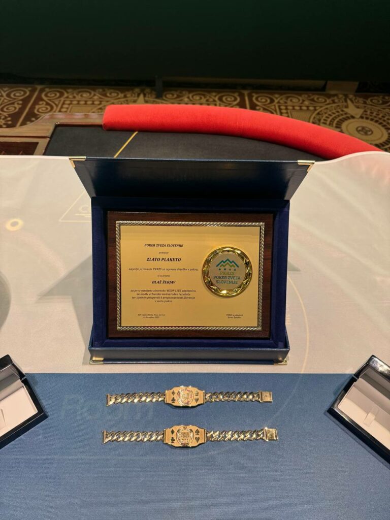 Na letošnjem Državnem prvenstvu v pokru v Perli 2025 je Poker zveza Slovenije podelila eno najprestižnejših priznanj v slovenskem pokru. Blaž Žerjav je prejel zlato plaketo PKRZS, najvišje priznanje zveze.