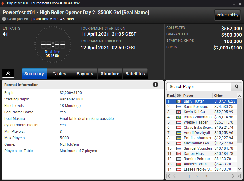 2021 POWERFEST na partypokru se je začel, Alex Foxen in Barry Hutter pa sta med prvimi velikimi zmagovalci. Oba High Stakes specialista sta osvojila šestmestno nagrado, in sicer na 5,200 $ High Roller in 2100 $ High Roller Opener.