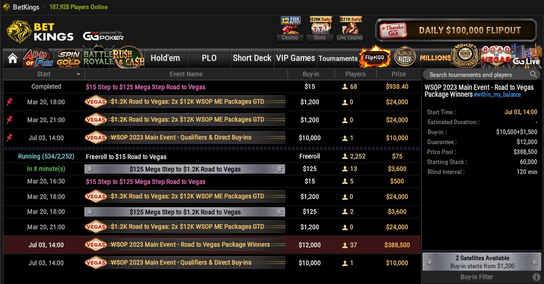 GG mreža je skupaj z GGPokrom, Natural8 in ClubGG-jem objavila vse podrobnosti svoje promocije Road to Vegas 2023, v kateri bodo igralci lahko osvojili svoj sedež za prihajajoči glavni dogodek World Series of Pokra 2023, ki bo potekal na lasvegaškem stripu v igralnicah Horseshoe in Paris Las Vegas.
