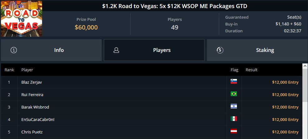 Kot zanimivost naj povemo, da se je že v prvem večeru satelitov na glavni turnir uspelo kvalificirati Blažu Žerjavu, v zadnjih letih enemu izmed najuspešnejših slovenskih pokerašev! Glede na to, da mu je januarja tudi uspelo osvojiti sploh prvi slovenski zlati prstan, s čimer se je kvalificiral tudi za milijonski WSOP freeroll, je sedaj čas tudi za naslednjo stopničko, kar bi zmaga na WSOP turnirji prav gotovo bila.