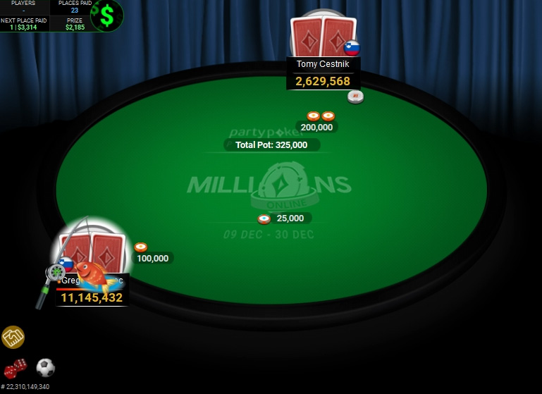 Bukovec je tako začel Heads-Up dvoboj z več kot 5:1 prednostjo v žetonih. Nad njegovo igro očitno ni bil zadovoljen Tomy, saj je v svojega nasprotnika večkrat zalučal ribiško palico, a to prvaka iz leta 2019 ni zmedlo.