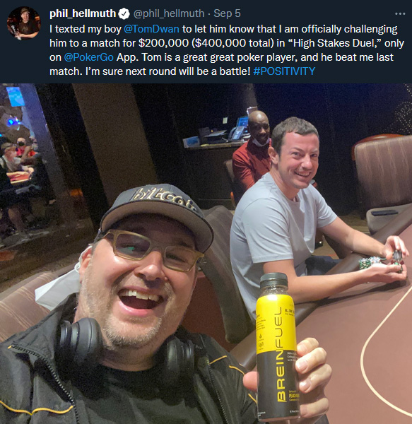 15-kratni zmagovalec WSOP zapestnice Phil Hellmuth ni prišel na vrh tako, da bi kdaj odnehal in tudi sedaj ne bo. Nekaj več kot teden dni po porazu v 2. krogu PokerGO “High Stakes Duel III” je Phil Hellmuth napovedal Tomu Dwanu, da si želi ponoven dvoboj. “Poker Brat” bo za vstop v 3. krog plačal 200.000 $, kar bo podvojilo nagradni sklad na 400.000 $.