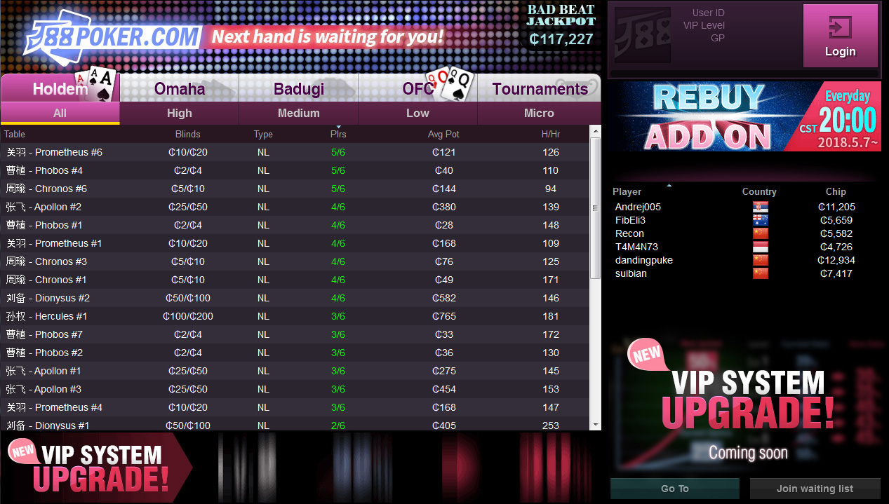 J88Poker, novo in hitrorastočo hongkongško poker stran, ki je svoja vrata odprla v oktobru 2017. Igralci prihajajo s celega sveta, najbolj se seveda osredotočajo na azijski trg, ki v zadnjem času doživlja razcvet, največ uporabnikov pa prihaja s Kitajske.