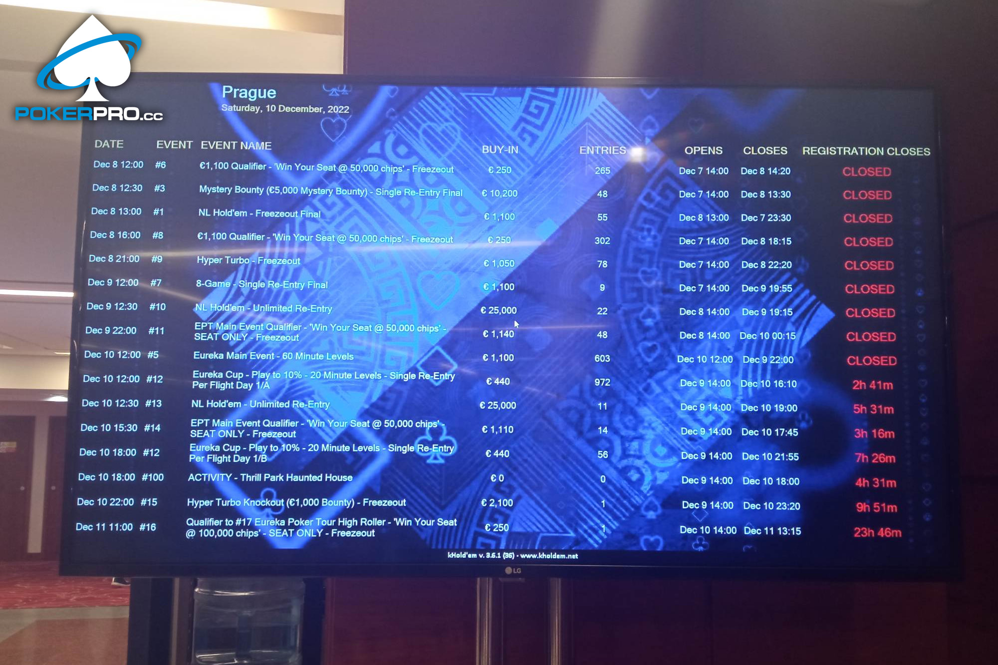 Letošnja Eureka v Pragi je še en dokaz več, da igralci najbolj hrepenijo po dobrih dogodkih s srednje velikimi vložki, ki še vedno predstavljajo zmerno prijavnino, ki pa vseeno prinesejo velike nagradne sklade. Tako smo ponovno priča rekordnemu turnirju, tokrat s 4.017 registriranimi na Eureka Main Eventu s 1.100 € prijavnine, kjer je nagradni sklad skočil na 3.856.320 € z neverjetnimi 496.760 € rezerviranimi za zmagovalca.