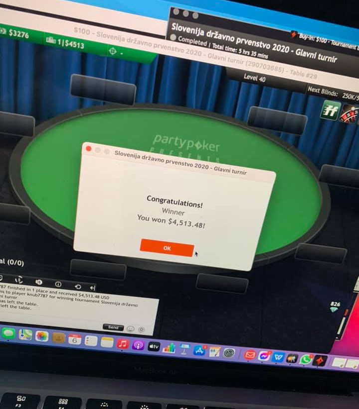 Turnirja je bilo konec že po nekaj handih heads-upa in Slabo premislim se je lahko veselil naslova in $1.292,08 nagrade.