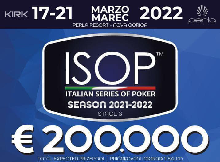 Ne zamudite 3. etape letošnje ISOP – Italian Series Of Poker sezone 2021-2022, ki se bo v Poker Roomu Perla odvila od 17. do 21. marca, 2022.Kot obiÄ…