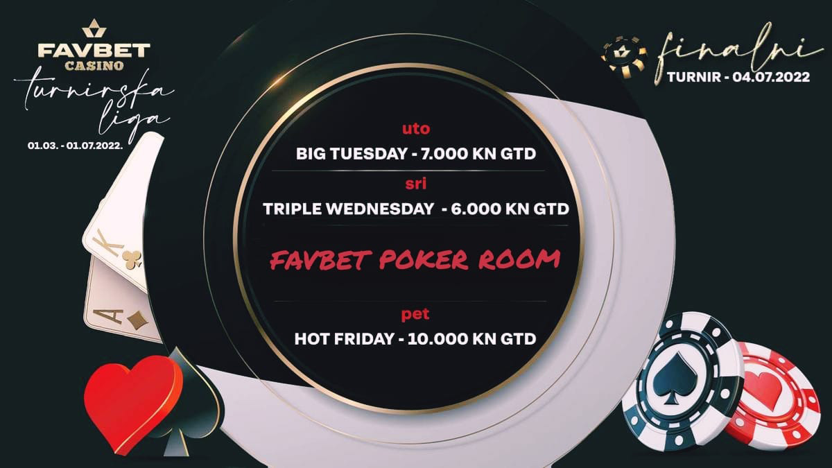 Če se slučajno odpravljate na počitnice v Split in se želite sprostiti ob pokru, lahko to storite v Favbet Poker Room kjer imajo tudi tedenski spored turnirjev. Split je čudovito mesto ob morju in ponuja odlično vreme, sredozemsko hrano, nočno življenje, zaradi česar je ena najbolj privlačnih lokacij za igralce pokra.