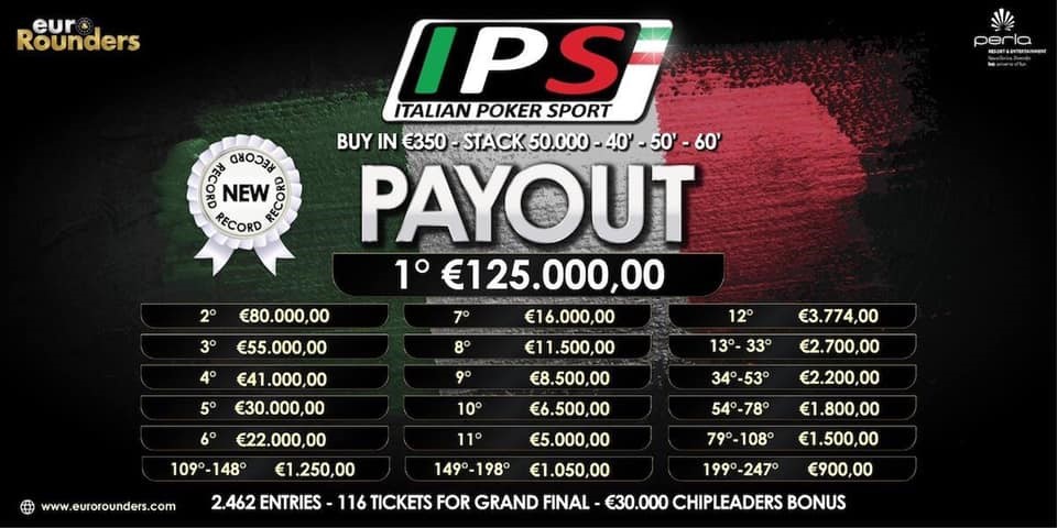 Velja omeniti, da je tokratni IPS poseben tudi zato, ker gre za največji poker turnir v zgodovini novogoriške Perle. Skupno je bilo 2426 vpisov, med denarne nagrade pa se je uvrstilo 247 igralcev.