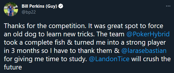 Landon Tice je sporočil, da je na heads-up dvoboju proti Billu Perkinsu zaključil z igranjem že nekaj manj kot po 25% odigranih handih, saj je ugot…