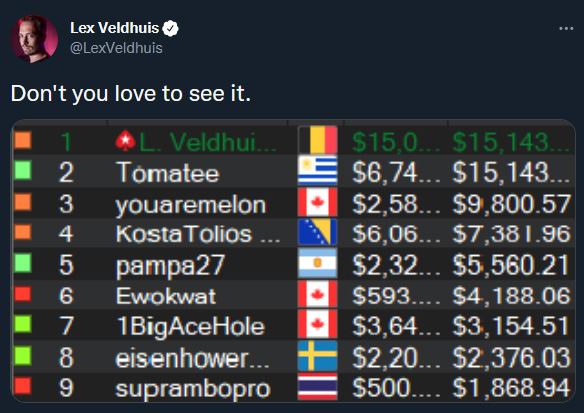 In nekaj takega se je zgodilo najpopularnejšemu poker streamerju na Twitchu Lexu Veldhuisu. V včeraj zjutraj končanem in kar 13 ur dolgem streamu je osvojil za več kot 70.000 $ denarnih nagrad.