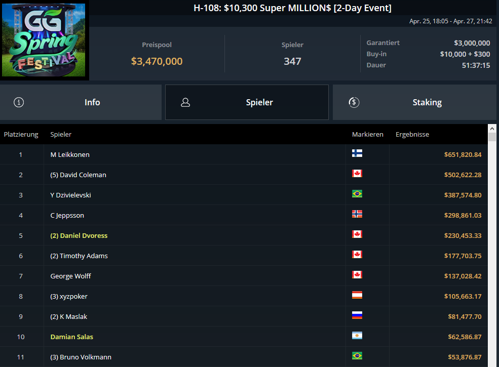GG Spring Festival 2021 na GG mreži (GGPoker, Natural8, 2bet4win) se je uradno končal in dogodek H-108 10.300 $ Super MILLION$ je bil primeren zakl…