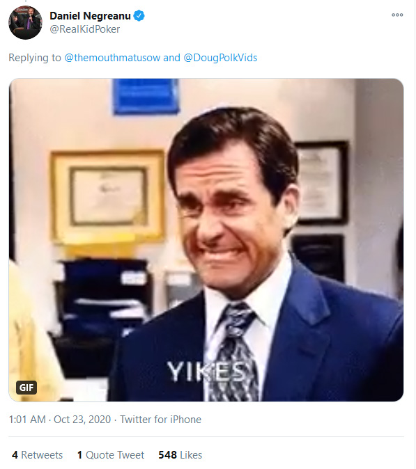 Oba igralca sta se tudi že odzvala na twitterju. Med tem ko je Daniel prilepil gif “yikes” iz The Offica, pa je Doug zvenel kar zaskrbljen s “Prosim, ne stori tega.”