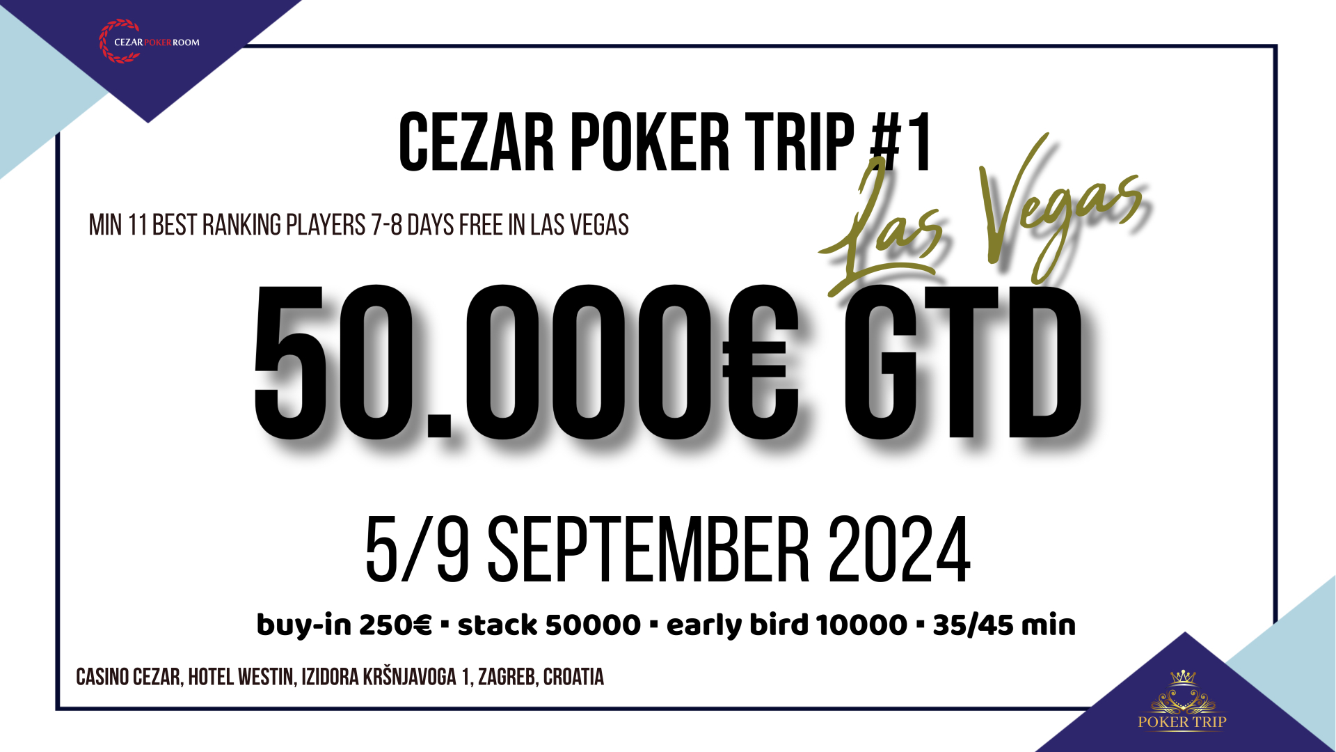 Cezar Casino in PokerTrip v septembru začenjata razburljivo serijo 9x turnirjev s 50.000 € GTD, ki bodo potekali vsak mesec do naslednjega poletja!…