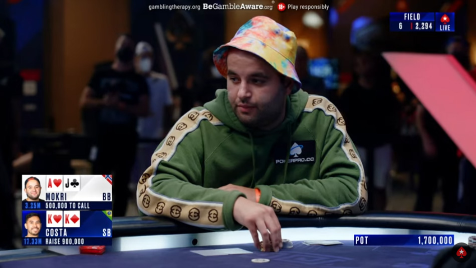 Izločen je bil na 6. mestu po nekoliko nesrečni sekvenci, saj se je Brazilec Costa na Small Blindu zbudil s parom kraljev, Mokri pa ni imel drugega, kot da porine all-in z AJ z Big Blinda. Norvežanu preostale karte niso pomagale in moral se je zadovoljiti s 334.480 € nagrade. Čestitke!