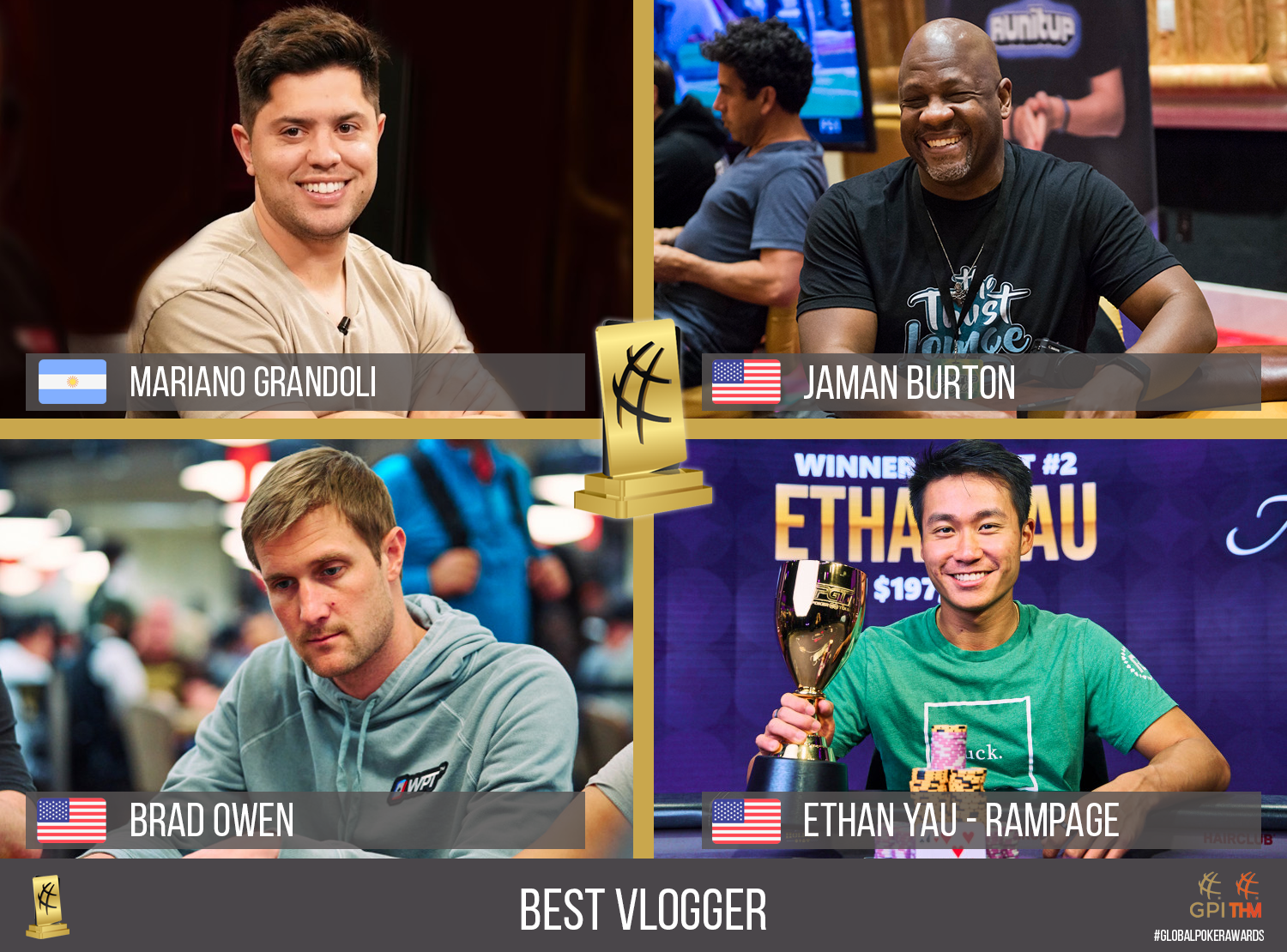 S kar tremi nominacijami pa se lahko pohvali Ethan “Rampage” Yau, ki se bo z Espenom pomeril za največji preboj leta in seveda v kategoriji za najboljšega vloggerja. Poleg tega je eden izmed štirih finalistov izbora oboževalcev za poker osebnost leta.