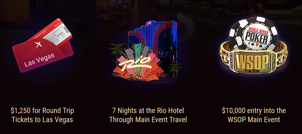 GG paket za glavni dogodek WSOP v vrednosti 12.500 USD vsebuje: