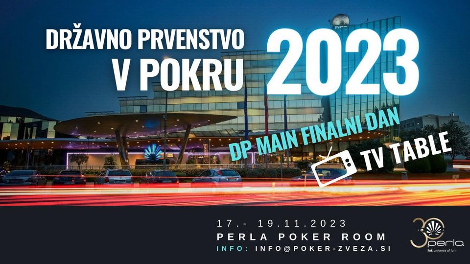 Za vse slovenske pokeraše bo to končno priložnost da pokažete svoje spretnosti, se pomerite proti najboljšim slovenskim igralcem in osvojite naziv državnega prvaka. Ne glede na to, ali ste izkušeni igralec ali začetnik, vas čaka vznemirljiv vikend poln akcije, napetosti in zabave. Vzemite v roke karte, pokažite svoj stil igre, pokerface, blefiranje in znanje, ter se uvrstite na LIVE TV TABLE finalne mize Glavnega turnirja! Dogodek bo tokrat gostil tri poker turnirje, ki so primerni za različne tipe igralcev!
