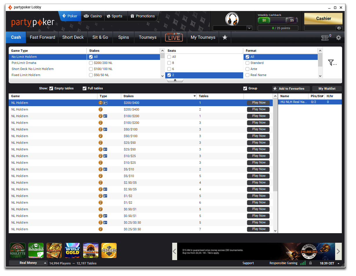 Partypoker je eden od ponudnikov, ki še vedno ponuja HU akcijo, vendar je tudi tu promet precej klavrn. Sedaj so se pri partypokru odločili izboljšati “ekosistem” HU iger, in so s tem namenom uvedli “King of the Hill” funkcijo. Namen je izboljšati igre in optimizirati igralsko izkušnjo za HU igralce in tako narediti partypoker bolj pošten klient, kjer bodo lahko igralci ponovno uživali v igri.