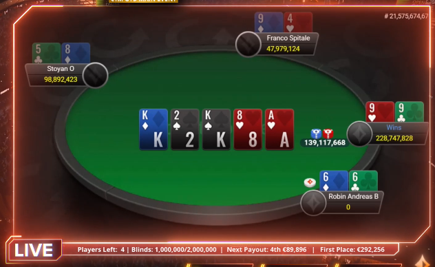 Kmalu zatem je Franco Spitale s pocket trojkami naletel na ase in končal na tretjem mestu za 135.483 €.