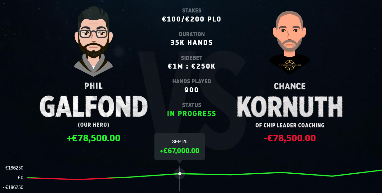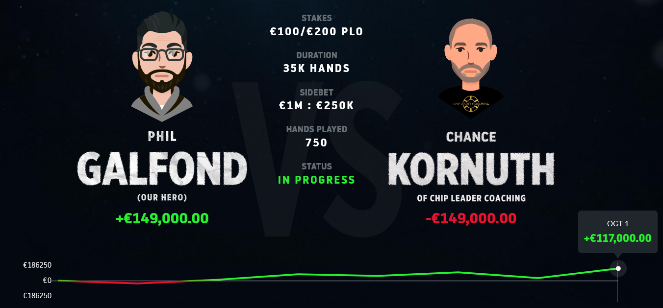 1. oktobra pa je Phil povsem nadigral Kornutha in si v vsega 750ih odigranih handih priigral 117.000€. Na Run It Once instagram profilu pa so objavili sliko in zapisali “A casual six-figure day for Mr.Galfond”.
