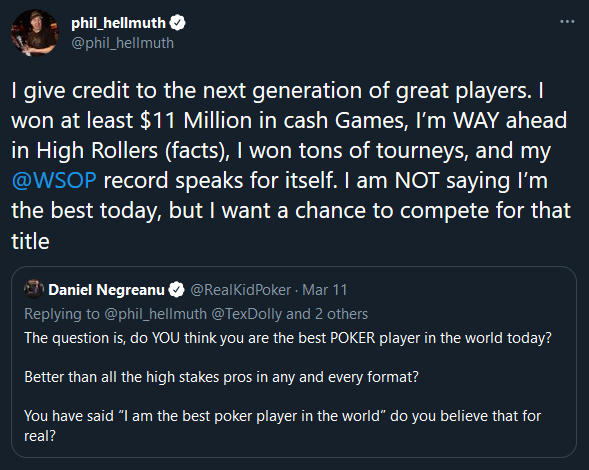 Hellmuth se ni umaknil in par se je dogovoril za dvoboj, ki se začne 31. marca, potem ko je bila zaradi “zaskrbjenosti zaradi COVIDa”, nekoliko preložena.