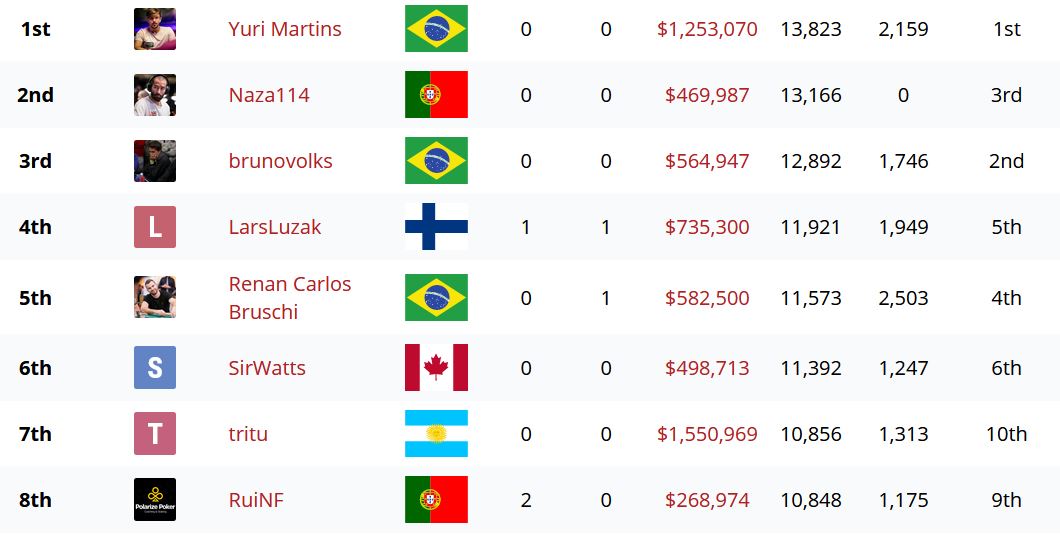 Lestvica PocketFives ga trenutno uvršča na prvo mesto po dobičku na spletnih poker turnirjih!