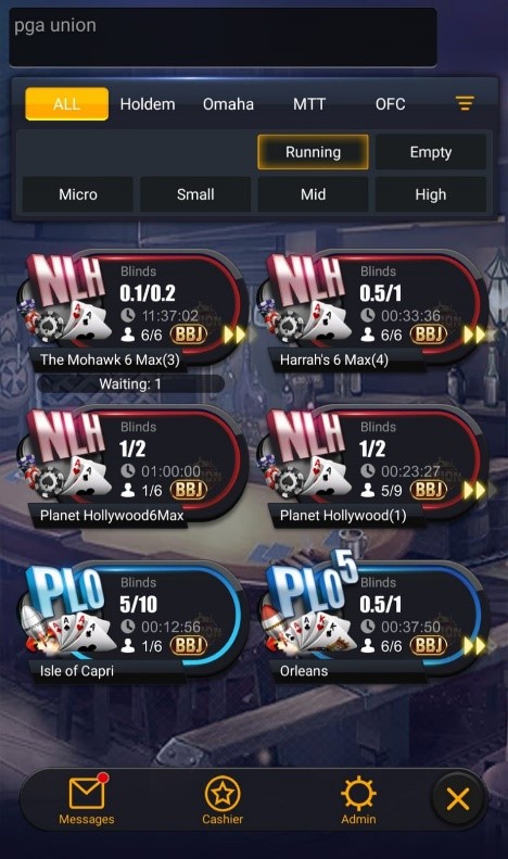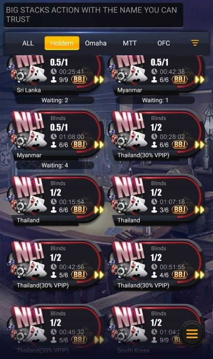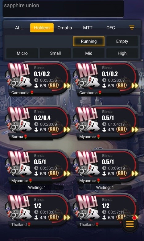 To unijo bi priporočili bolj low stakes igralcem, ker v uniji potekajo igre od 0,05/0,10 in do 1/2. Na voljo imate različne igre, kot so NLH, PLO, PLO5, PLO6, OFC IN MTT. Igre potekajo v treh različnih formatih 5-max, 6-max in full ring. Največ akcije se odvija v popoldanskem času.