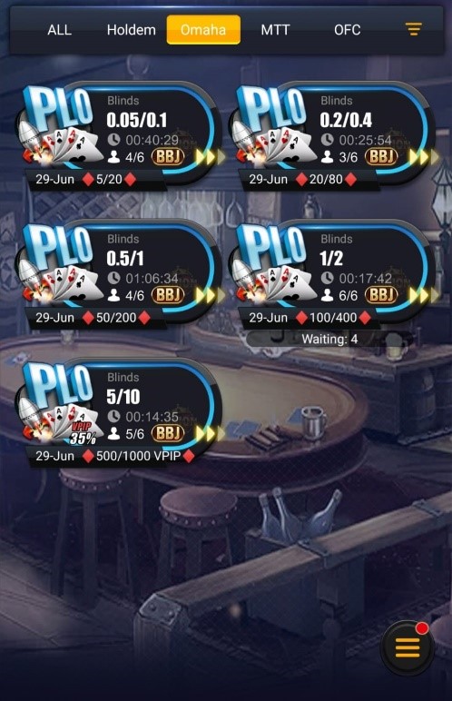 Na voljo so vam tudi zanimivi turnirji z vstopninami od 1 žetona in vse do 40 žetonov. Ponujajo vam različne igre, kot so NLH, PLO, PLO5, PLO6 in 6+, potekajo pa v dveh različnih formatih 6-max in full ring. Vsak dan poteka tudi Daily 100 GTD FREEROLL.