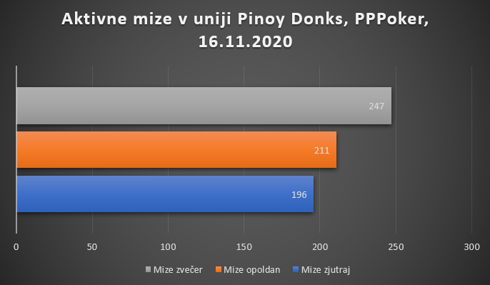 Spodaj si lahko ogledate število miz na običajen dan v tednu.