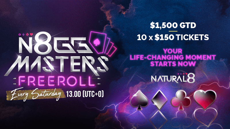 Na Natural8 imate priložnost, da se uvrstite na največji nedeljski turnir N8GG Masters s $500.000 GTD povsem brezplačno. Vsako nedeljo ob 15. uri namreč poteka freeroll, kje je podeljenih kar 10 vstopnic vrednih 150 $.