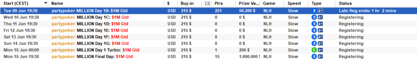 Turnir Million $215 $1M Gtd: