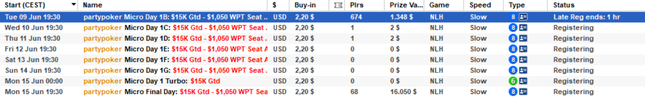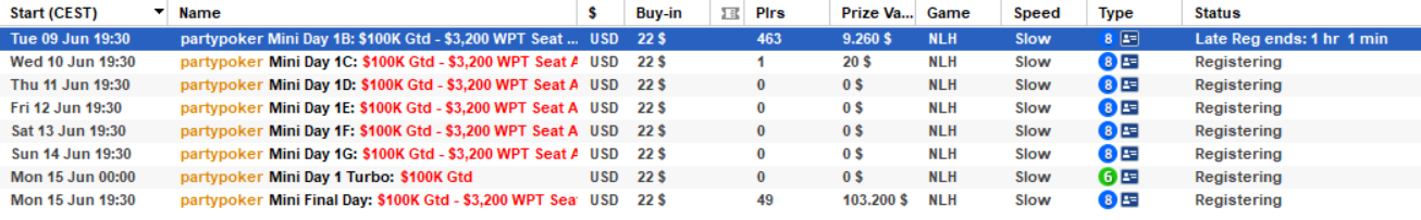 Poleg teh sprememb pa se na partypoker vračata dva turnirja Mini $22 $100K Gtd in Mikro $2,20 10K Gtd. Dodali pa so tudi vstopnice na ta dva turnirja in sicer na Mini 1x $3200 WPT Seat in na Mikro 1x $1050 WPT Seat. Oba turnirja potrebujeta 5000 igralcev, da pokrijeta garantiran sklad.