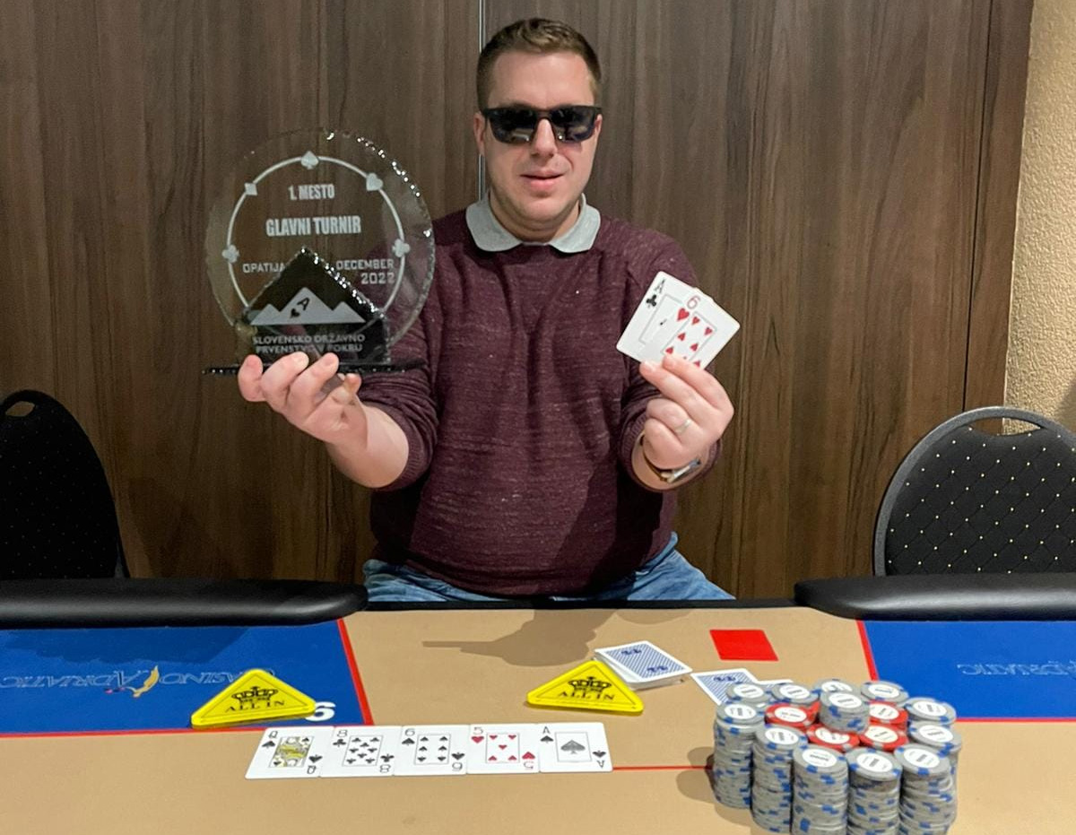 Državni prvak v pokru v letu 2022 je na koncu še drugič po letu 2017 postal Radovan Šukalo, ki je v drugem dnevu porabil samo približno 5 ur, da je ugnal vso preostalo konkurenco in za zmago, poleg pokala, odnesel tudi 3.672 € nagrade. Čestitamo!