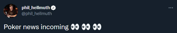 Vse se je začelo v torek, ko je Phil Hellmuth na Twitterju pustil skrivnostno sporočilo, da prihaja neka poker novica.