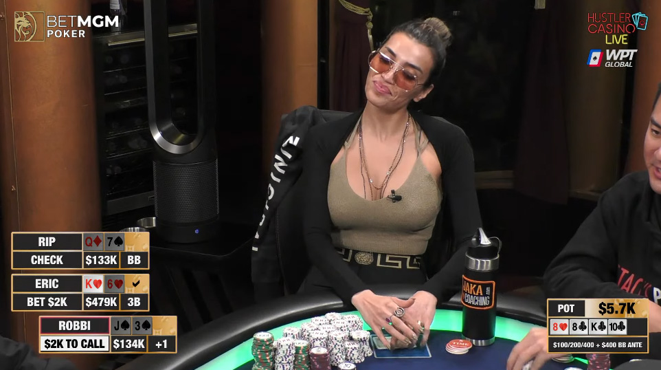 Sploh ne vemo, kje pričeti s tem handom, saj je za obdelati toliko različnih stvari, a glavno vprašanje je seveda, zakaj je Robbi poklicala Garrettov all-in z J-high? Je mislila, da ima par trojk in lovi njegov blef? Ni mogla napačno prebrati handa, saj je pred klicem dvakrat preverila svoj hand, kajne? Tudi njeno obnašanje za mizo ne da nič kazati, da bi storila napako.