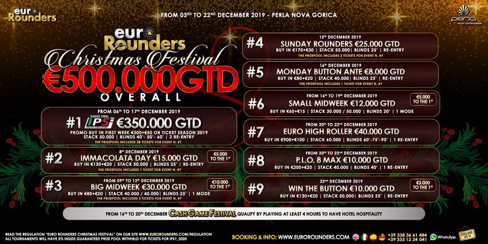 3. decembra se v novogoriški Perli s skupaj 500.000 € GTD božičnim festivalom začenja pravi praznik pokra, ki bo trajal vse do 22. decembra. Na sporedu je 9 različnih turnirjev, glavni pa vsekakor 350.000 € GTD IPS Grand Final.