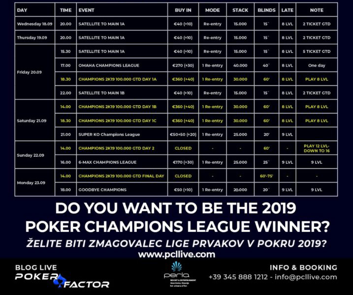 Poleg glavnega turnirja bodo na sporedu tudi High Roller event, turnir dobrodošlice, PLO event in Big Stack turnir. Kvalificirate pa se lahko tudi preko spleta, saj online sateliti potekajo na