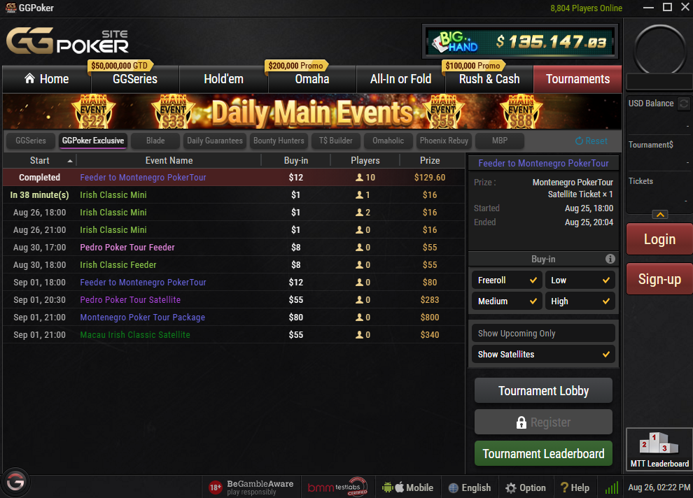 Poleg Main Eventa bodo na sporedu tudi drugi standardni turnirji kot so Omaha, 6-Max, KO in poslovilni turnir.