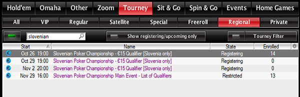 Poleg današnjega satelita, bosta na sporedu še dva, in sicer 29. oktobra ter 2. novembra. Oba oktobrska se začneta ob 19. uri, novembrski pa ob 20-ih. Vse pa najdete v PokerStars lobbyu pod zavohkom Turnirji – Regionalni.