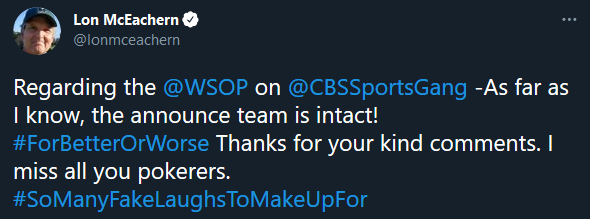 Prvič po dveh desetletjih bo mreža, ki ni ESPN, dom svetovne serije pokra. CBS je objavil, da so s PokerGO sklenili večletni dogovor o ekskluzivnih TV-pravicah WSOP. Mreža bo predvajala 15 ur glavnega dogodka WSOP in dodatnih 36 ur drugih dogodkov za zapestnice.