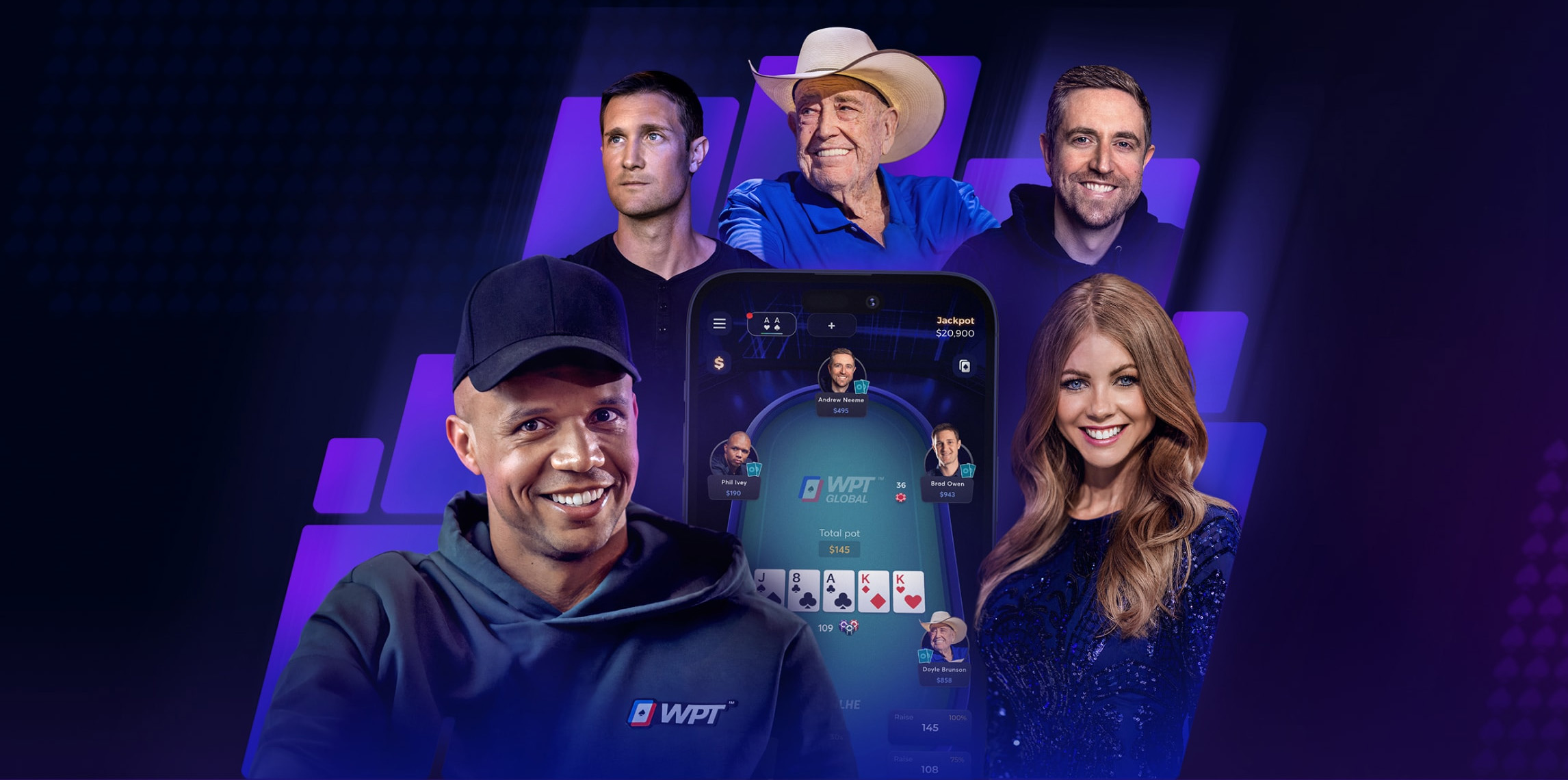 WPT Global je v svojo ambasadorsko ekipo privabil številne poker zvezdnike, vključno z legendarnim Doylom Brunsonom, enim izmed najboljših pokerašev vseh časov Philom Iveyem, dvema največjima vloggerjema Bradom Owenom in Andrewom Neemejem ter priljubljeno poker komentatorko Lynn Gilmartin.