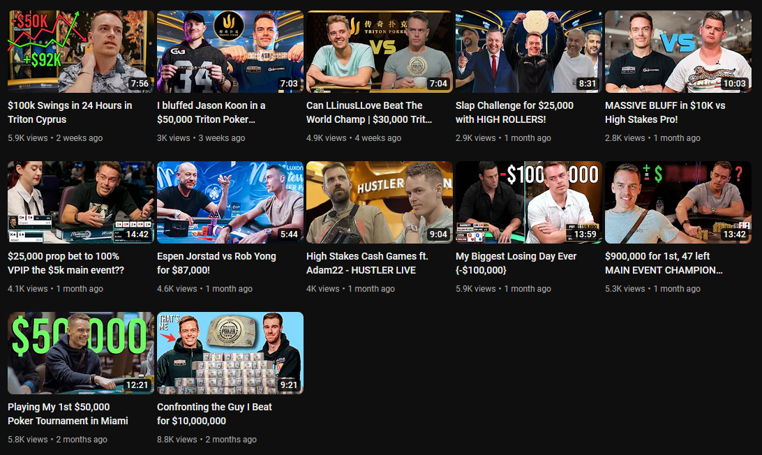 Pred kratkim je odprl nov YouTube kanal, kjer je z nami začel deliti svoje poker dogodivščine. To je vsekakor nekaj česar še nismo doživeli, saj ni nikogar, ki bi vlogal iz zakulisja največjih poker turnirjev na svetu. In govorimo o velikih številkah, do 200.000 $ velikih številkah.