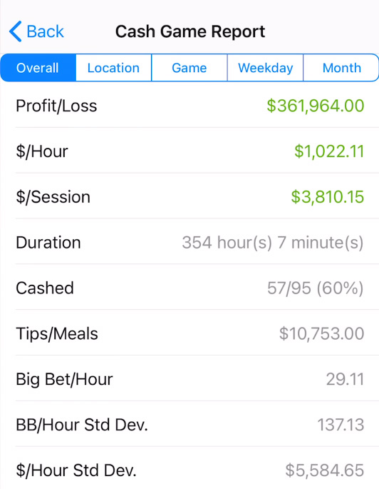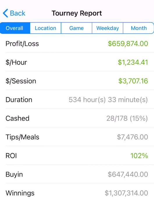 Po njegovih podatkih s sledenjem v mobilni aplikaciji, je na denarnih mizah v 354 urah zaslužil 361.964 $, kljub temu da je marca izgubil več kot 100.000 $ na Hustler Casino Live igrah. Če ste mislili, da je ta Rampageova številka impresivna, počakajte na rezultate njegovih turnirjev.